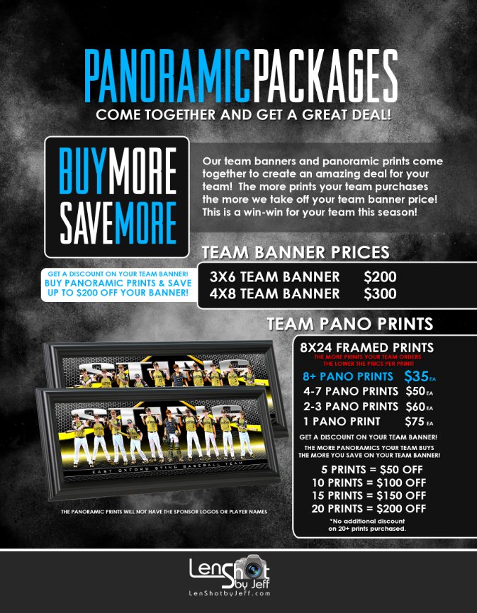 New this year also is the ability to receive a discounted or free banner with group purchases of the large team framed panoramic print. Details are in the catalog links below.